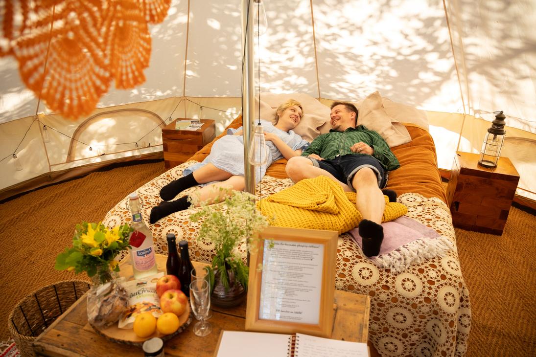 Wellness und Wald Heute ist ein Tag der Entspannung und des Verwöhnens! Nach dem ausgiebigen Frühstück ist unser Glamping-Zelt zum Entspannen und Genießen für Sie reserviert! Wir pflücken einige Kräuter aus der umliegenden Natur und machen uns wohltuende Wildkräuter-Fußbäder. Gegen Aufpreis können Sie eine Moorbehandlung, eine Hot-Stone-Massage oder eine Verwöhnmassage bestellen. Nach dem Abendessen werden wir den Whirlpool und die Sauna für Sie vorbereiten!