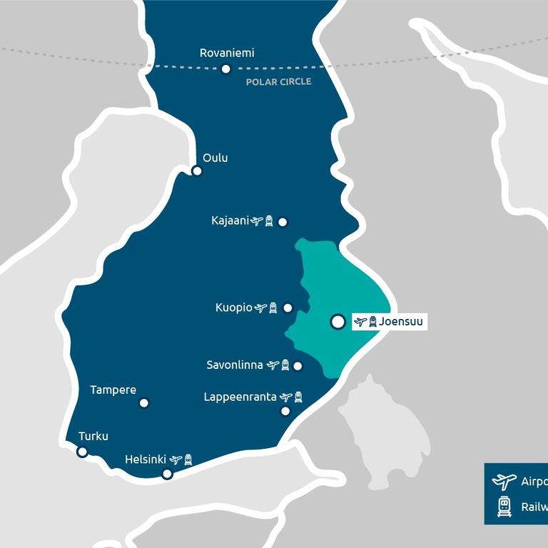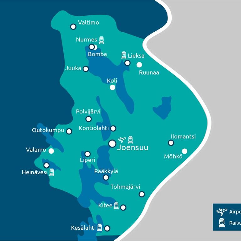 North Karelia is easy to reach. Daily buses, trains and airplanes enable you to travel through Finland if renting a car isn't an option. Daily flights from Helsinki to Joensuu, Kuopio and Kajaani makes it comfortable to travel even from far abroad.