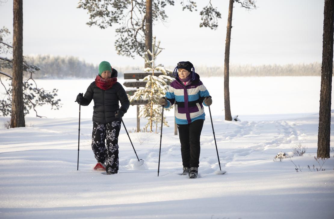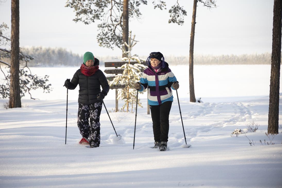 Discover a winter adventure at Lake Valkeisjärvi, where you can enjoy skiing, snowshoeing, snow sledding, or hiking depending on the weather. Warm up by the campfire with delicious snacks and beverages. Experience the perfect blend of nature and relaxation in a pristine winter setting.