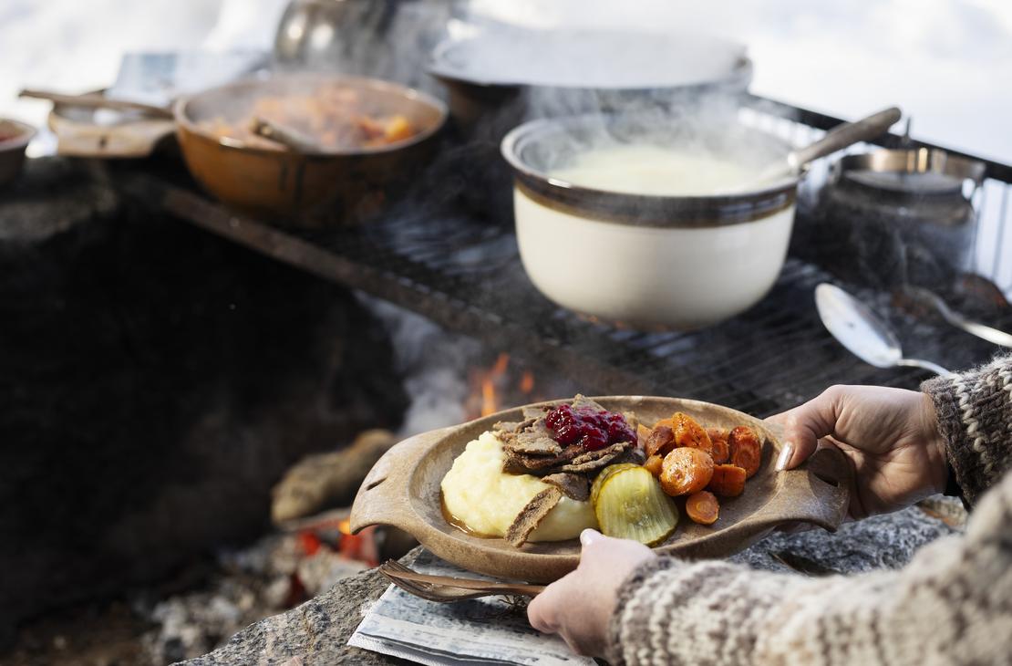 Lunch at the farm. There is also a possibility to buy homemade souvenirs made of reindeer antler.