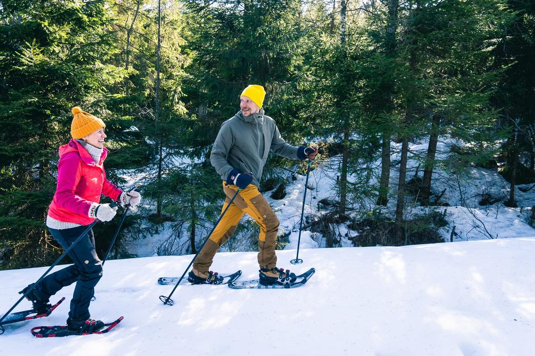 Before embarking on the tour, you will be equipped with suitable gear (you can also participate wearing your own winter gear) and advised on sliding snowshoe features and technique. Sliding snowshoes combine the best features of snowshoes and forest skis. They offer a good grip when skiing uphill and allow for a bit of speed when skiing downhill. This safari requires a good level of general fitness.