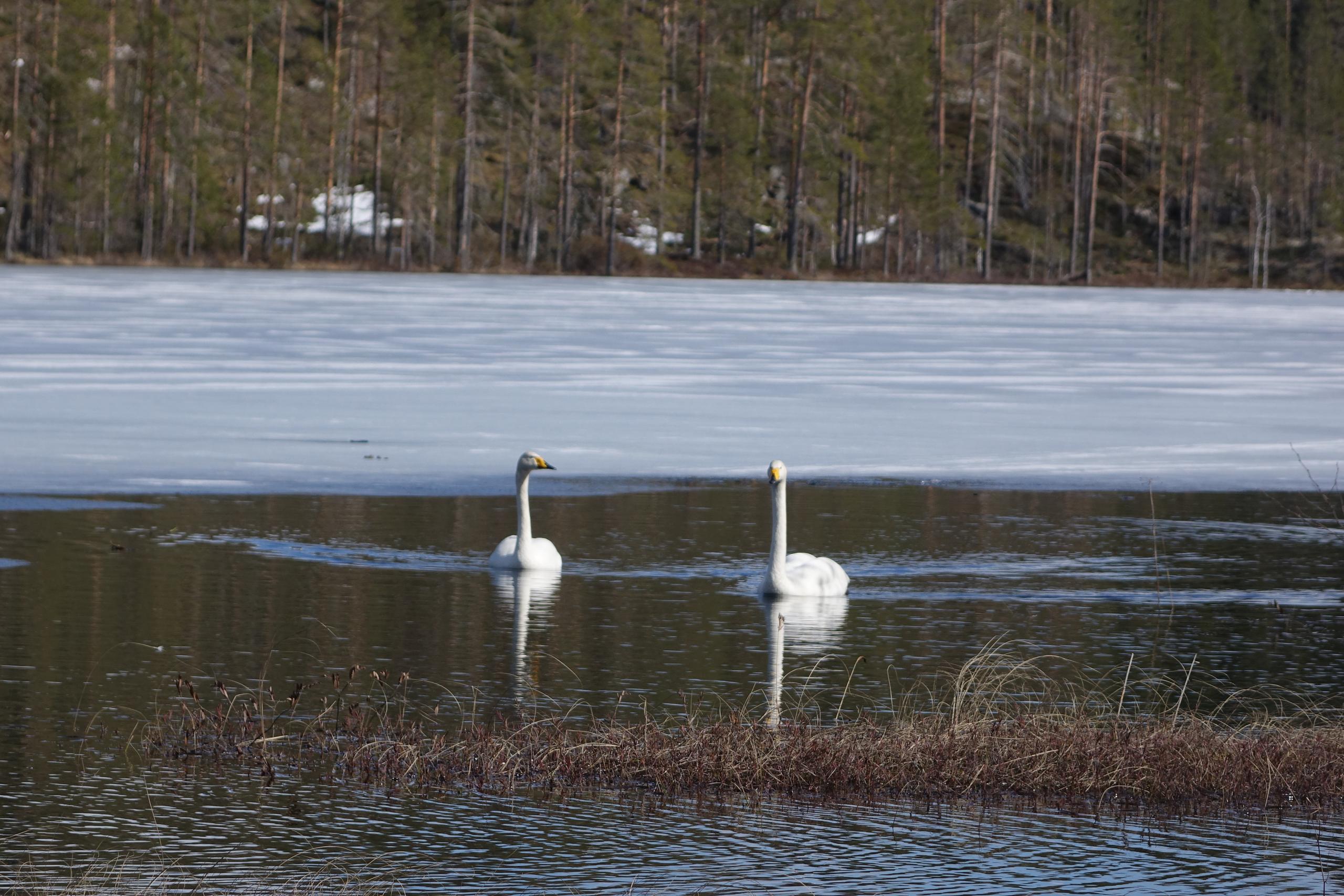 We will walk to birdwatching towers in bird-rich wetlands to follow the hustle and bustle of spring migration. On the shores of the lakes, we see how the winter ice cover thins, turns to dark ice and finally releases the waters to flow again. The sounds of spring grow stronger day by day: the cries of swans and cranes and the first singers of the forests announce the beginning of a new season.