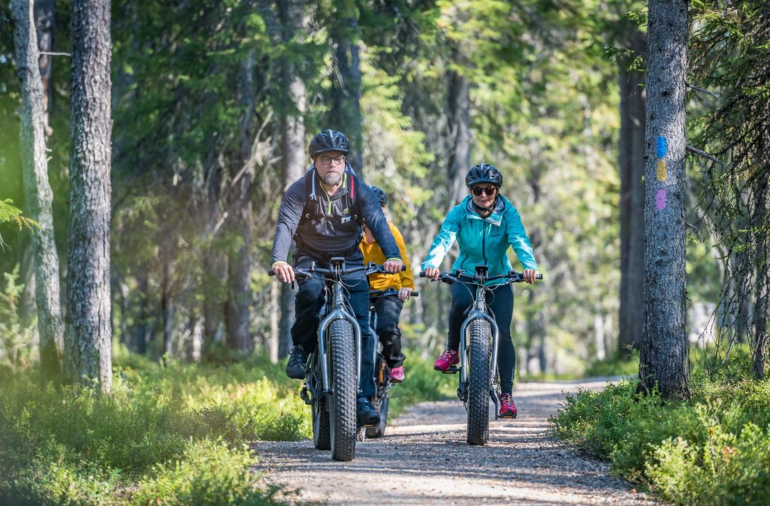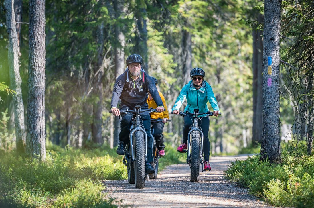 After a short lesson about biking with easy mountain bikes, fat-bikes, you hear about living in the southernmost fell area in Finland and the unique features of nature and area. After the briefing, we start to explore the nature around us. Mountain biking path goes on high sandy esker through the old pine forests and between clear ponds and lakes. Lovely snack at a wooden shelter by a beautiful lake. The circle route takes you back to Syöte Nature Centre. Picnic lunch outside at a wooden shelter close to the Nature Centre.