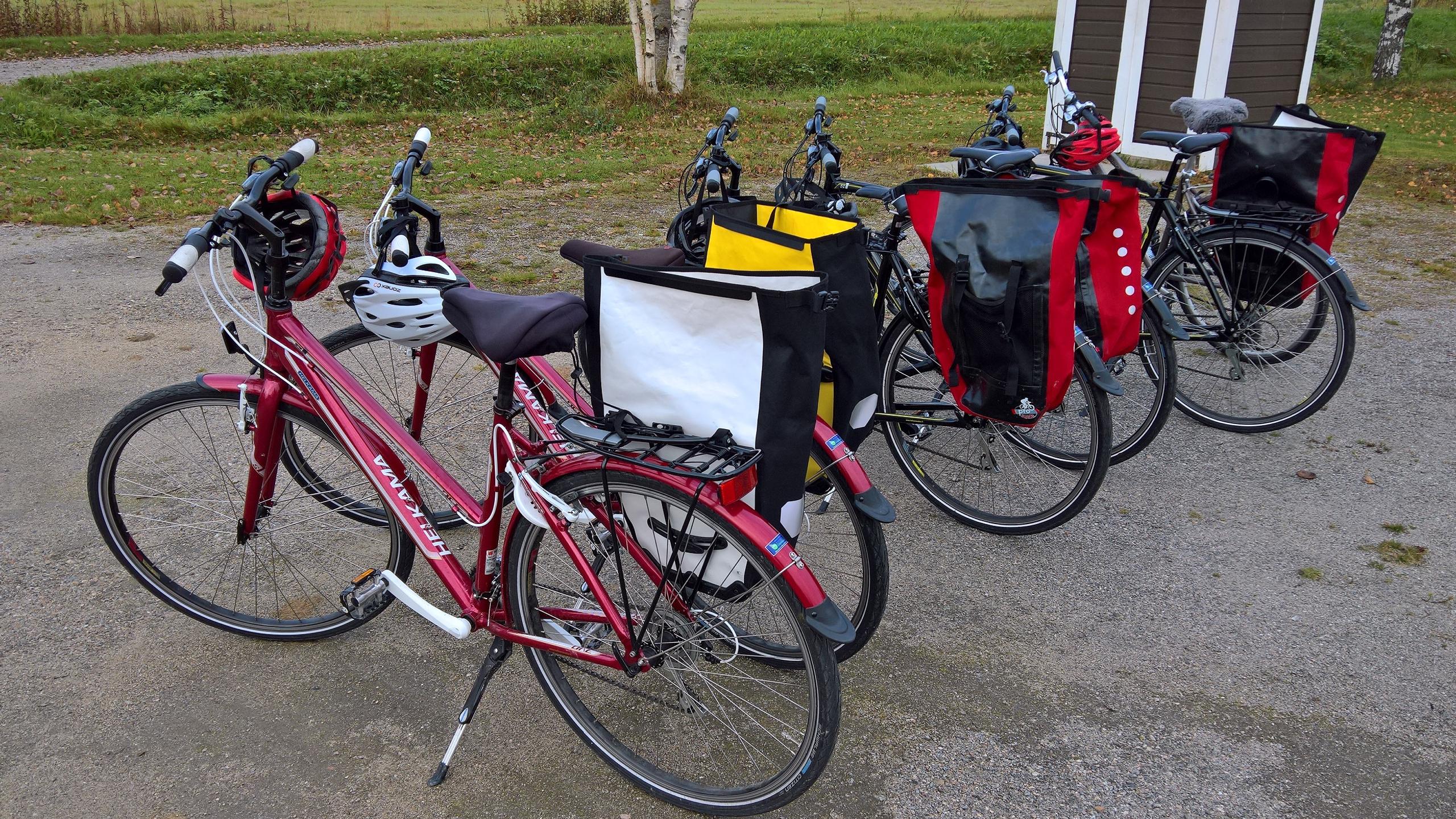 Jos vuokraat pyörän järjestäjiltä, pyörävuokraan kuuluu pyörälaukku ja kypärä. Ota mukaan oma eväsrasia ja juomapullo. Voit halutessasi tuoda mukanasi myös oman pyörälaukun/repun ja kypärän. Vuokrapyörien huollosta vastaa Majatalo Pihlajapuu, puh. 0400 877085 /Äksyt Ämmät
