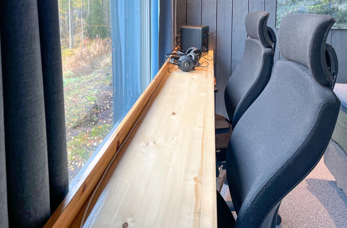 Mökin varusteisiin kuuluu; astiasto kahdelle hengelle, kahvin- ja vedenkeitin, mikro, leivänpaahdin, jääkaappi, astiapesukone, keraaminen liesi, lakanat, pyyhkeet