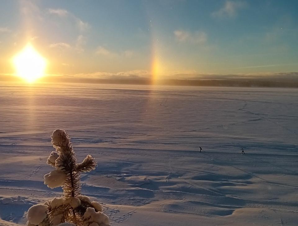 Kokeile lumikenkäilyä Hiukan rannalla Sotkamossa