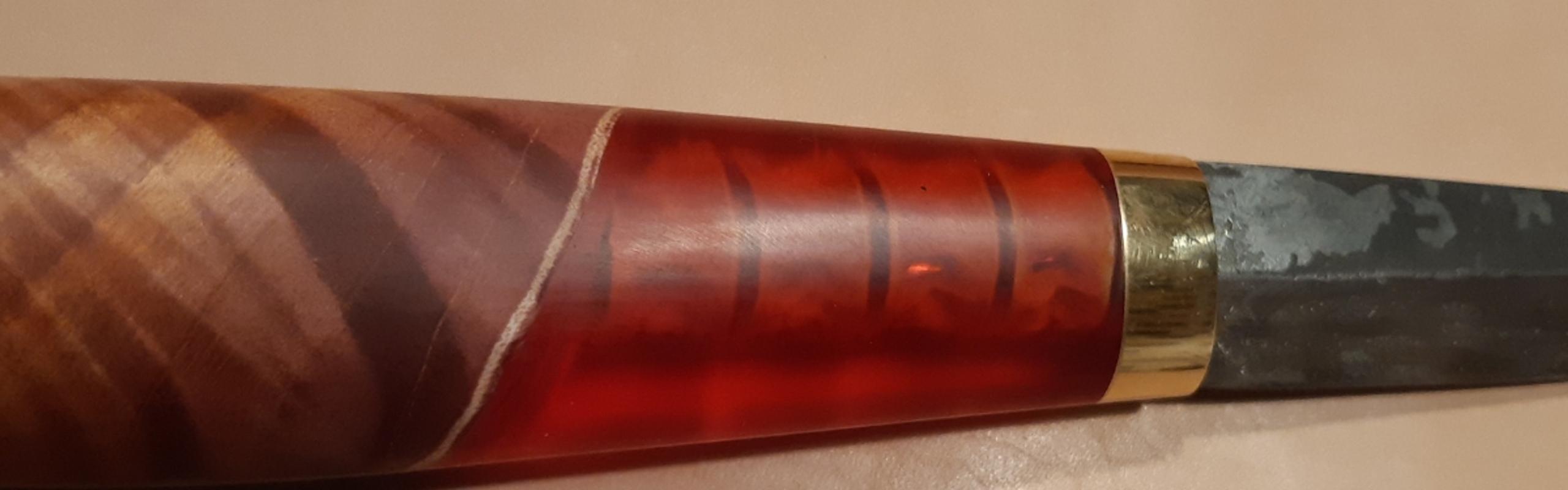 Puukonkahva materiaalina nykyään käytän enimmäkseen itse stabiloitua puuta sekä hybridipalikoita. Uusien materiaalien kokeilu kiinnostaa mutta myös perinteisiä materiaaleja käytän valmistamissani tuotteissa.